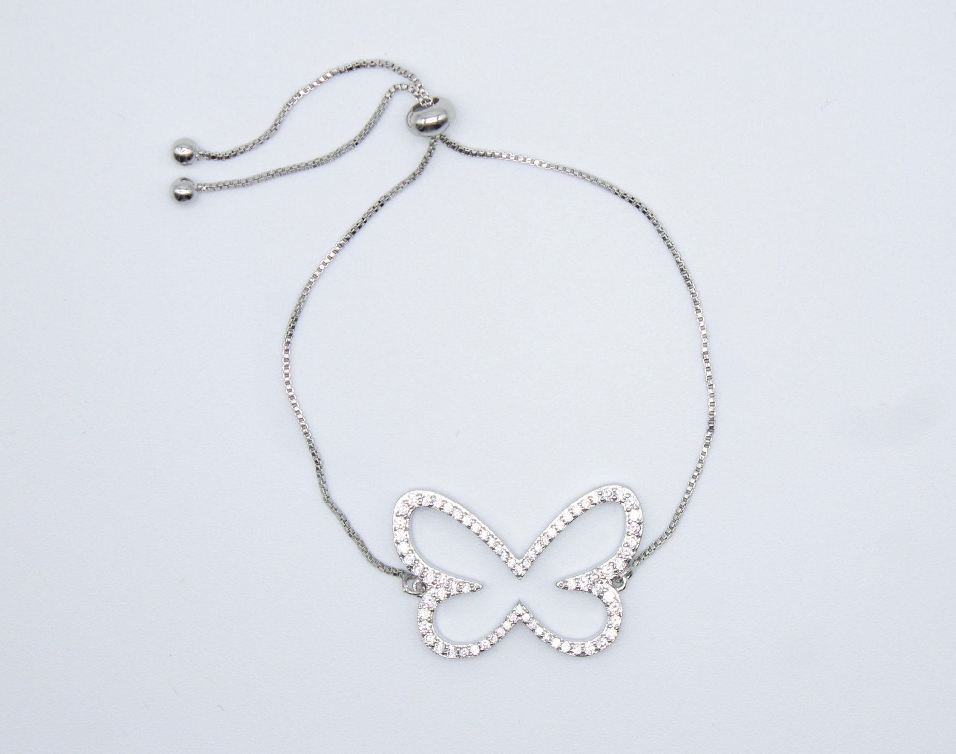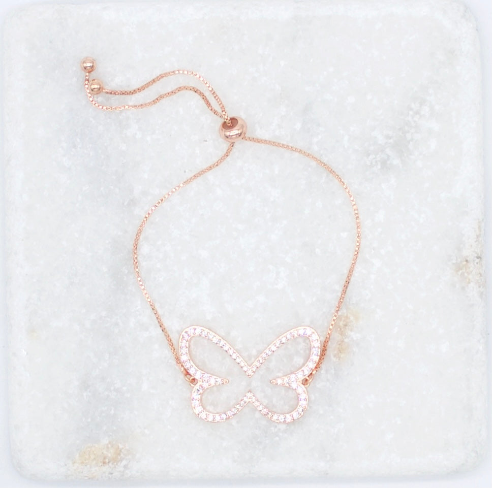 18K Gold Filled Butterfly Adjustable Bracelet With Clear CZ Stones (I378)